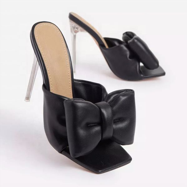 | Item Name | Custom BlackFashion Squared Toe Faux Leather Transparent Heel Slippers Clear Nappa Pu Ankle Strap For Women And Ladies |